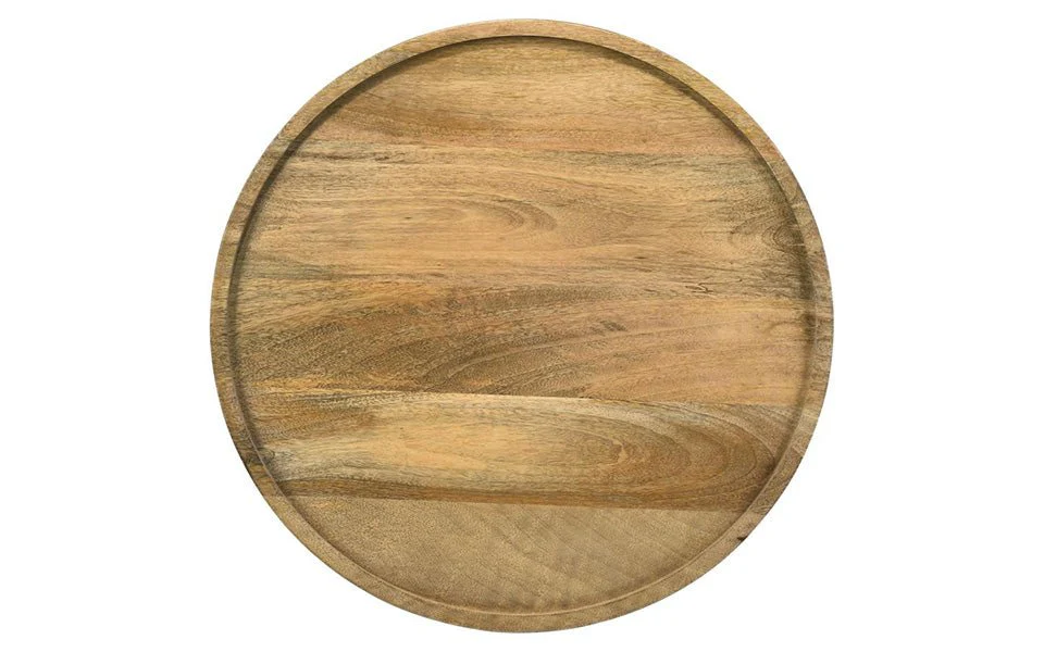 This global-inspired round accent table offers a striking design for any space. An elegant, solid contoured base tapers toward the top that supports a round table surface. Raised edges define the silhouette even further and keep items in place. Made of an eco-friendly mango wood, this accent table rests comfortably beside a small accent chair or acts as a standalone furniture piece to showcase decor. Allow it to hold a small table lamp or collection of family photos.