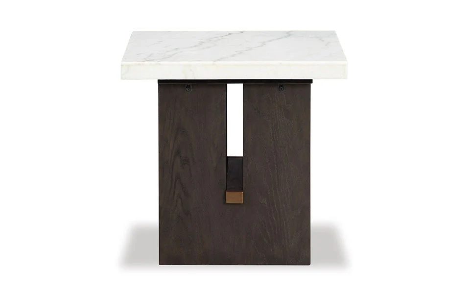 Dressed to thrill, this simply stunning end table offers a high-design look at a down-to-earth price. Ultra-sleek lines are accentuated with a dark waxy brown oak finish that’s so easy on the eyes. Clean-lined and modern, the plinth base and natural marble tabletop showcase quality craftsmanship and attention to detail. This table is the perfect sofa companion for a living room or family space, with a timeless look that's made to last.